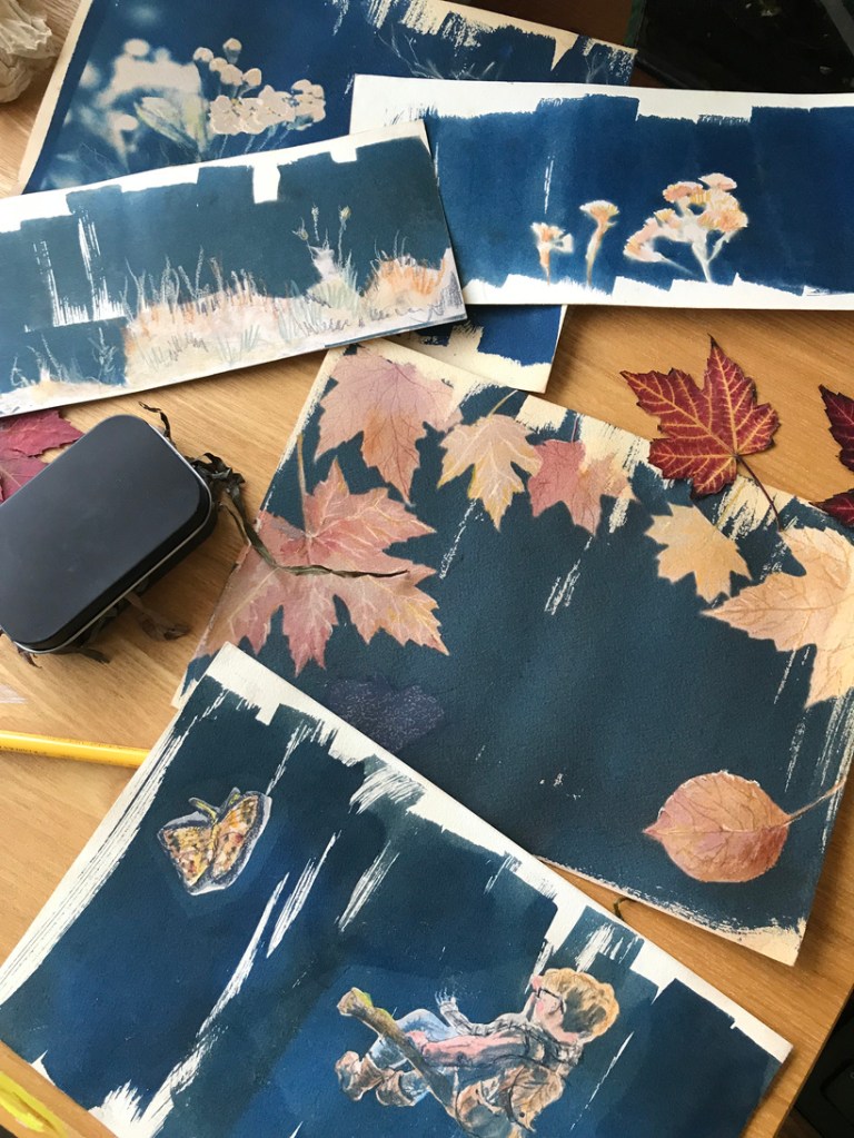 Loved how my cyanotype tunnel book turned out! Finished thing as viewed from the front above, also the layers before assembly. I learnt a lot as it was my first try, but I can’t wait to try something so tactile again.