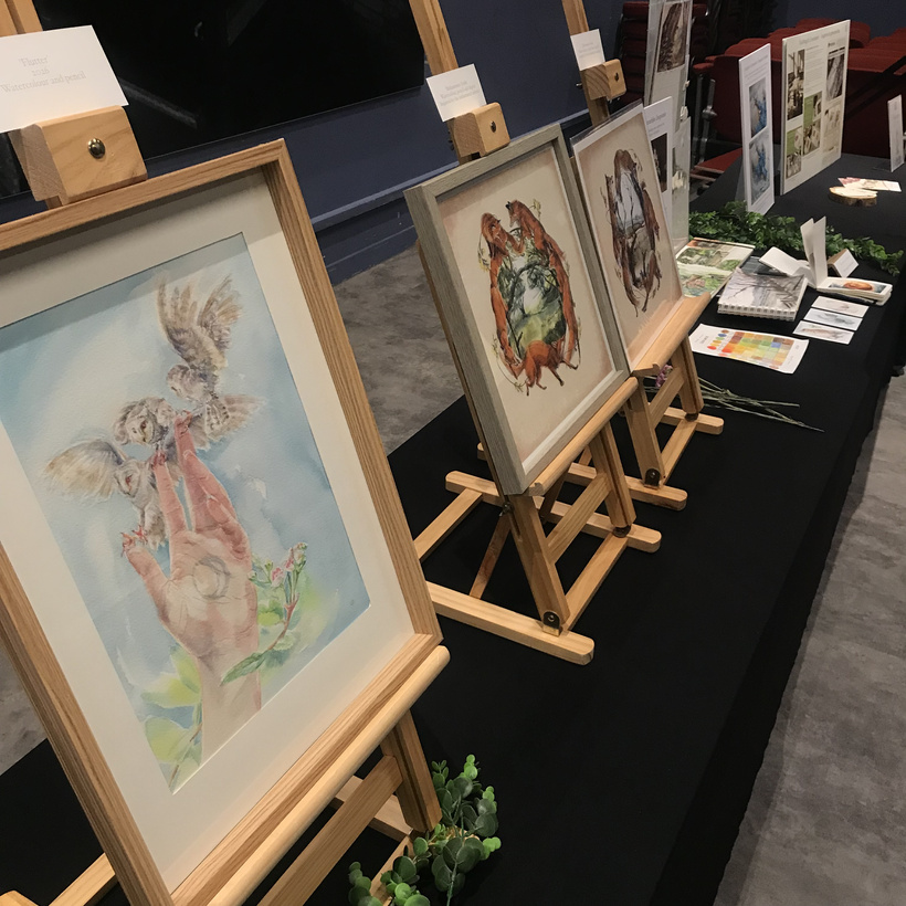 I was showing off fantastical nature illustrations from my ‘UnderGrowth’ narrative, the book-inspired ‘Biblioscapes’ world, other nature artwork and lots of sketches, tidbits and select new work.